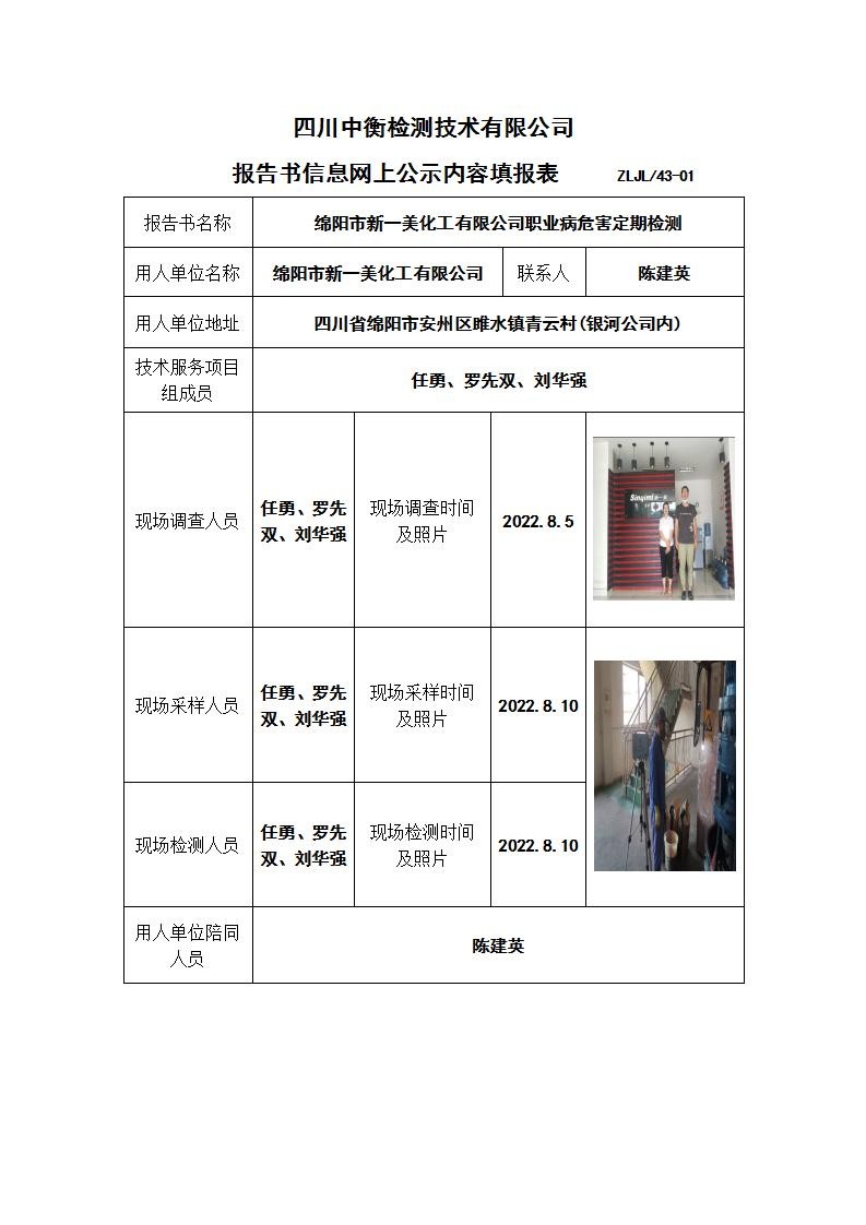 綿陽市新一美化工有限公司職業(yè)病危害定期檢測