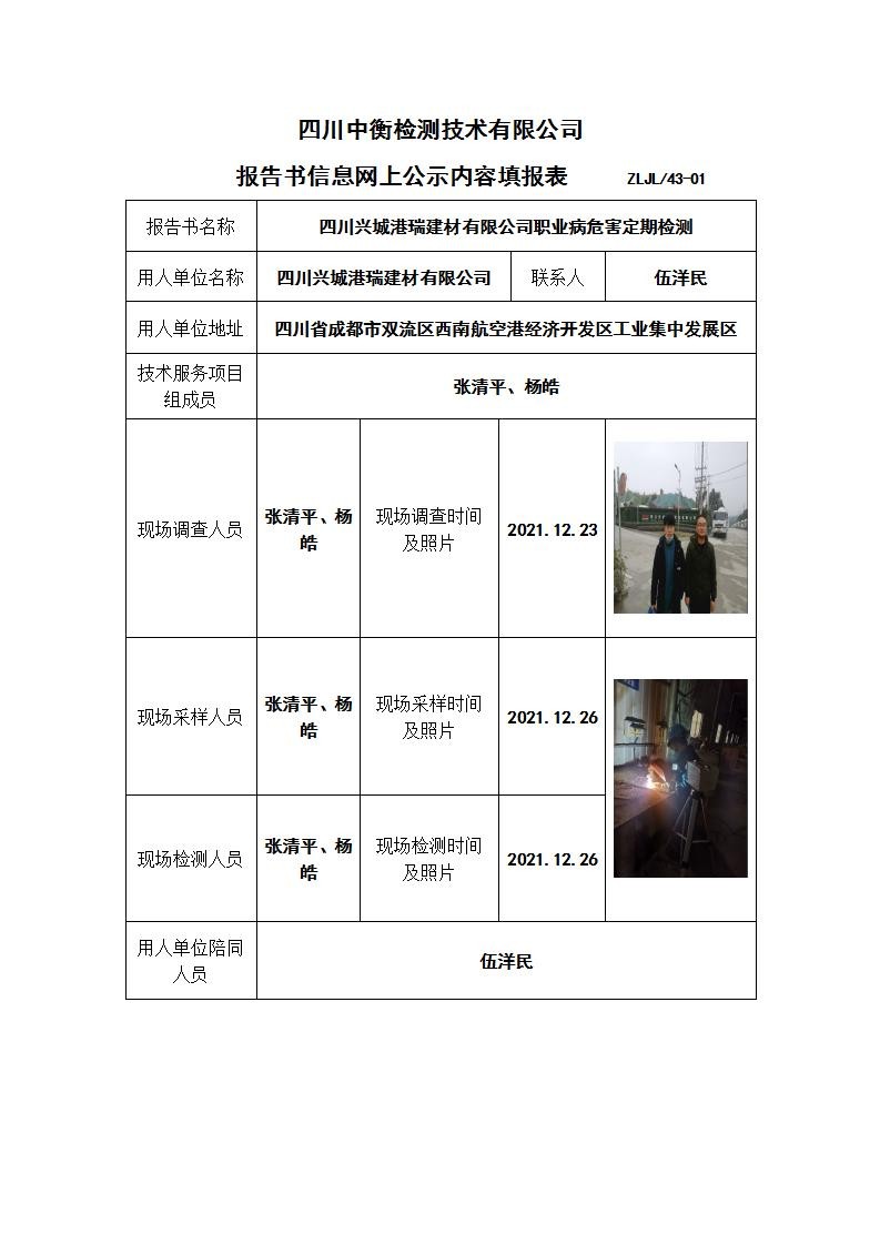 四川興城港瑞建材有限公司職業(yè)病危害定期檢測