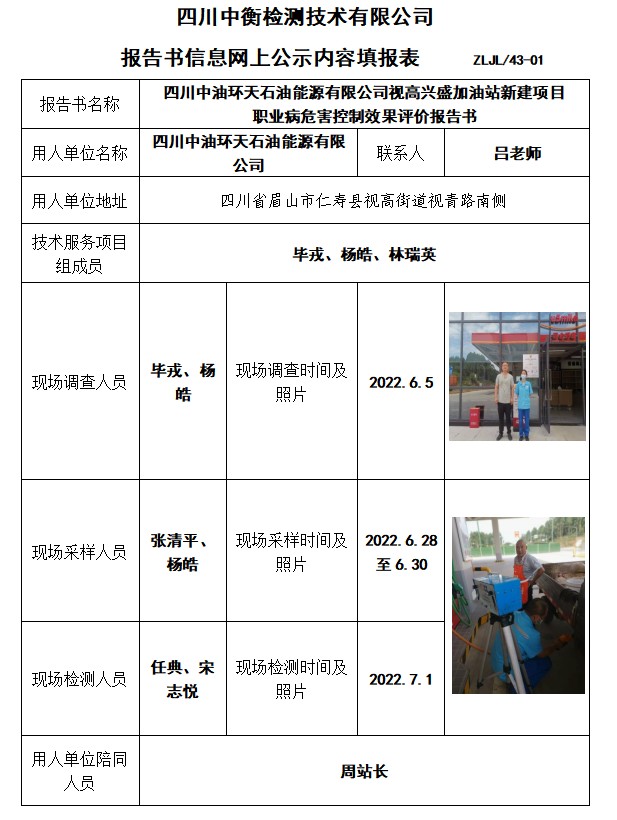 四川中油環(huán)天石油能源有限公司視高興盛加油站新建項(xiàng)目 職業(yè)病危害控制效果評(píng)價(jià)