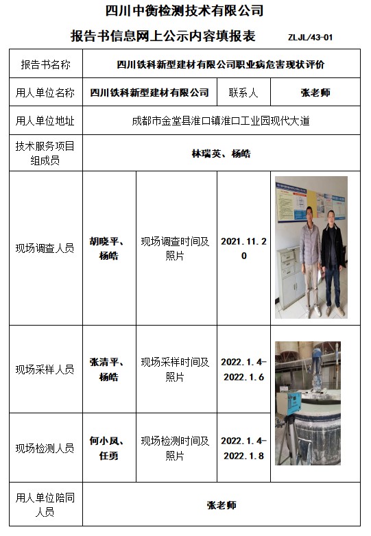 四川鐵科新型建材有限公司職業(yè)病危害現(xiàn)狀評價(jià)