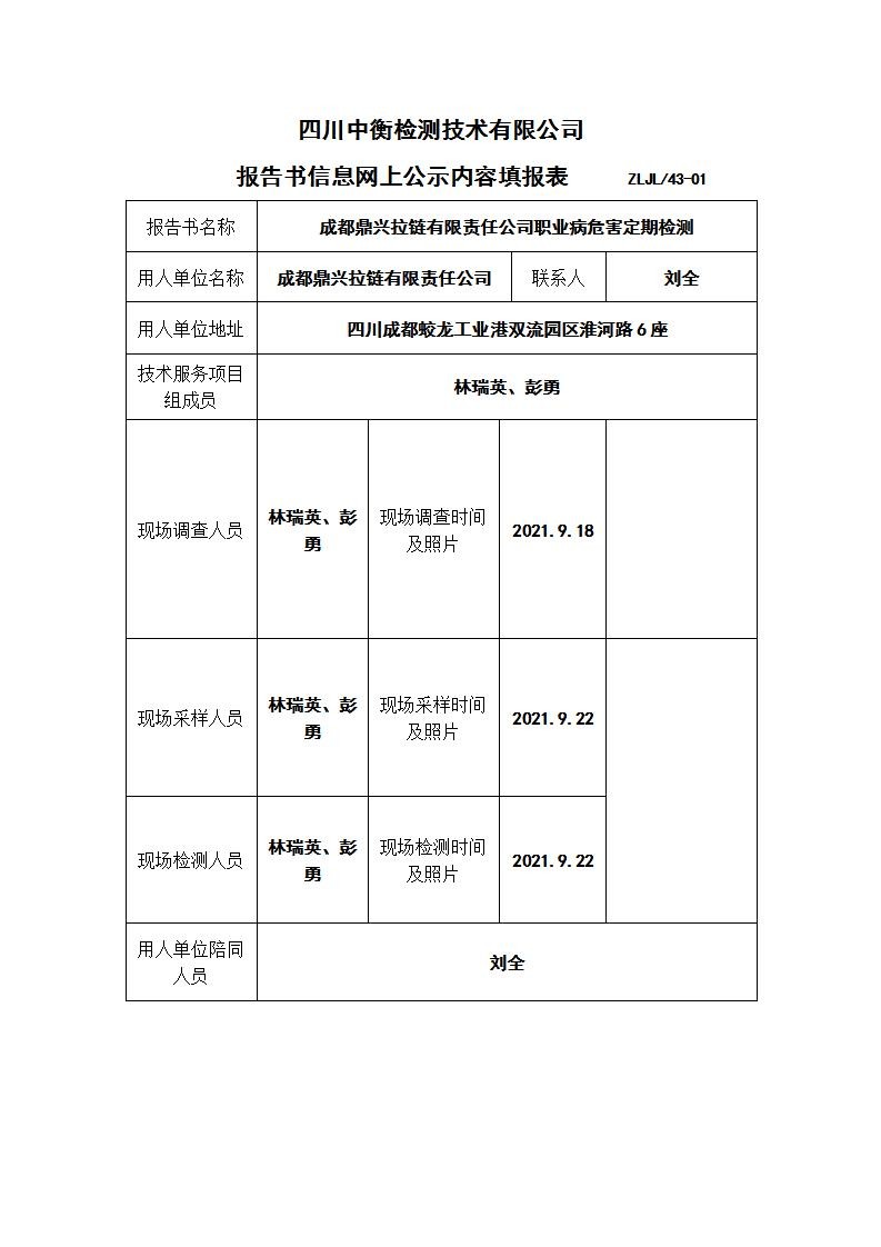 成都鼎興拉鏈有限責任公司職業(yè)病危害定期檢測
