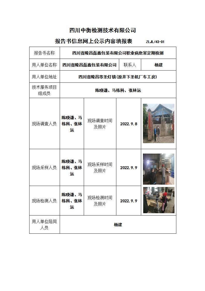 四川省隆昌磊鑫包裝有限公司職業(yè)病危害定期檢測