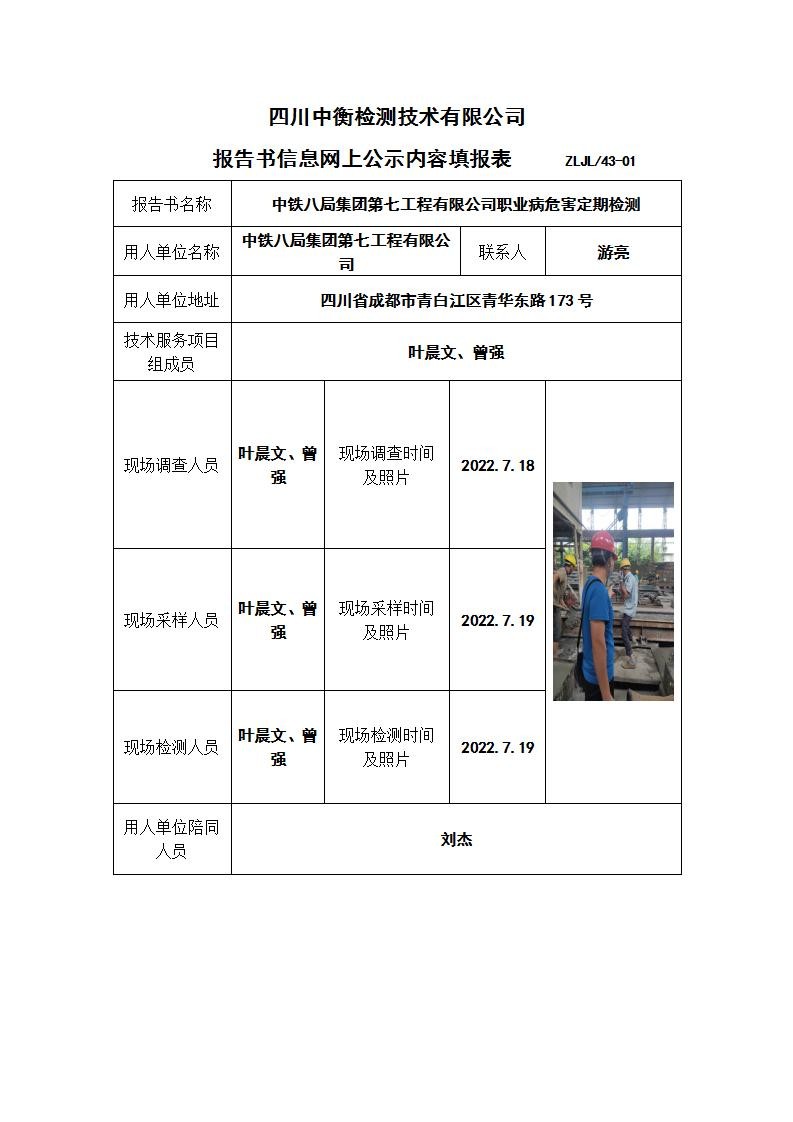 中鐵八局集團(tuán)第七工程有限公司職業(yè)病危害定期檢測