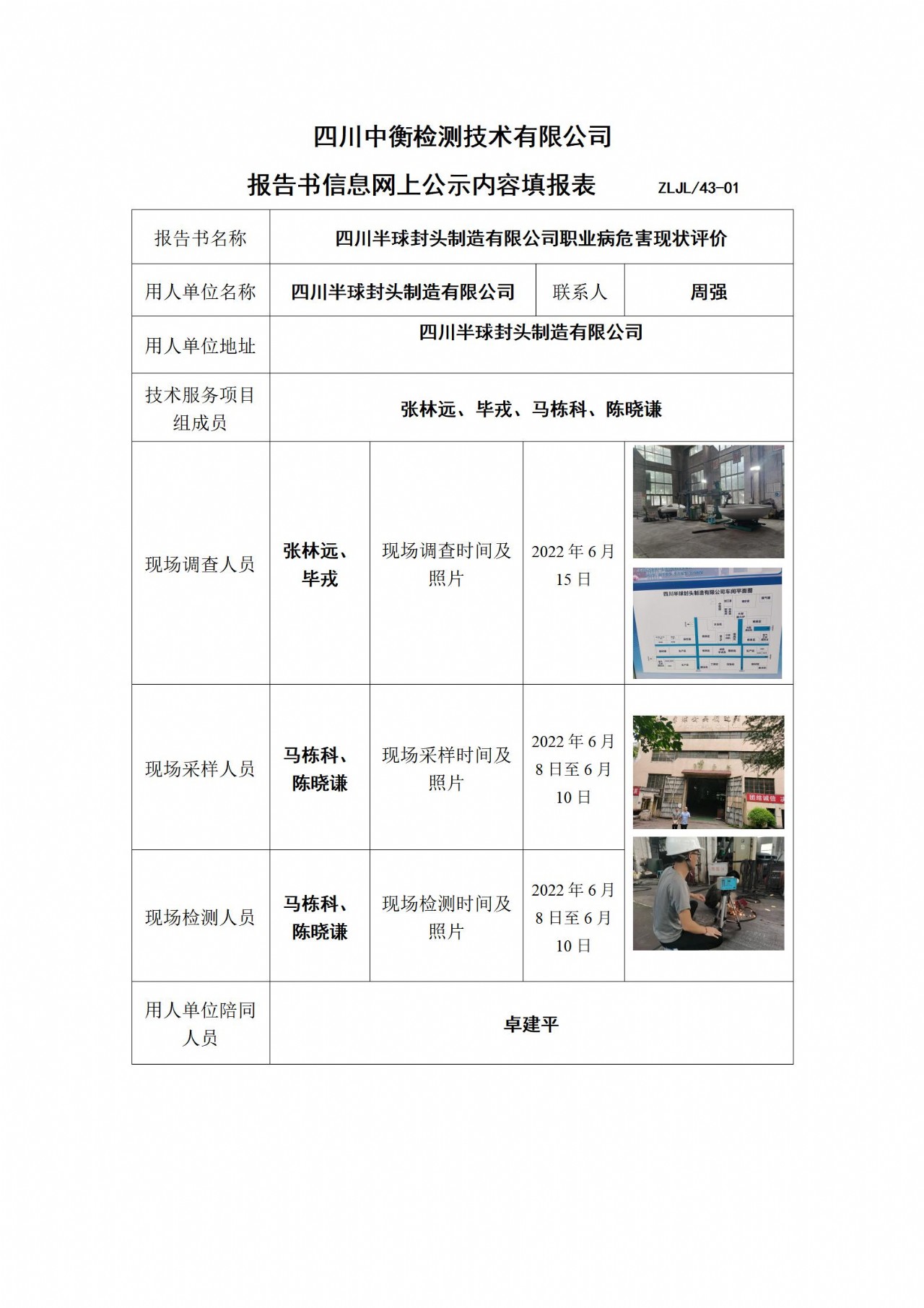 四川半球封頭制造有限公司職業(yè)病危害現(xiàn)狀評(píng)價(jià)