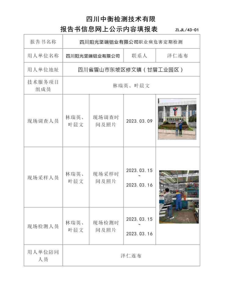 四川陽(yáng)光堅(jiān)端鋁業(yè)有限公司職業(yè)病危害定期檢測(cè)