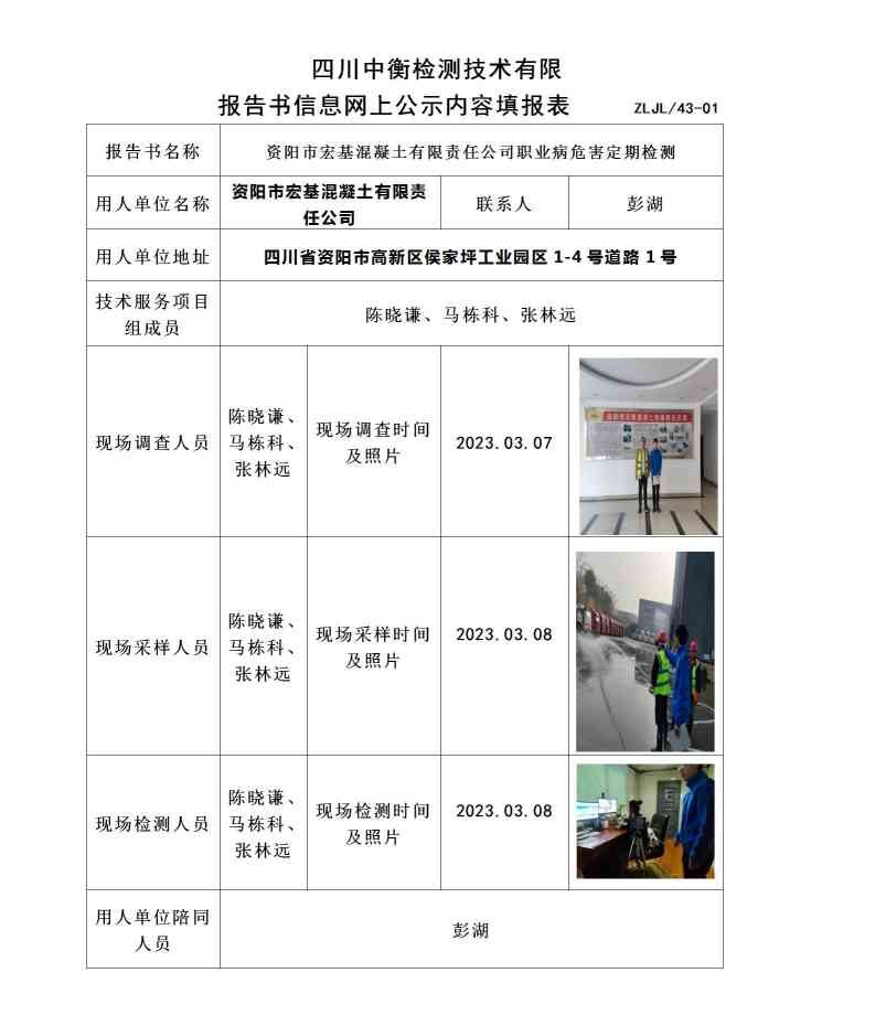 資陽(yáng)市宏基混凝土有限責(zé)任公司職業(yè)病危害定期檢測(cè)