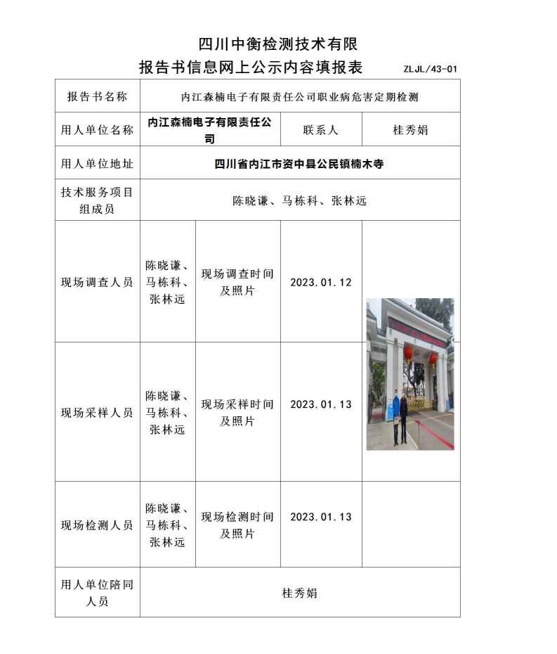 內(nèi)江森楠電子有限責(zé)任公司職業(yè)病危害定期檢測