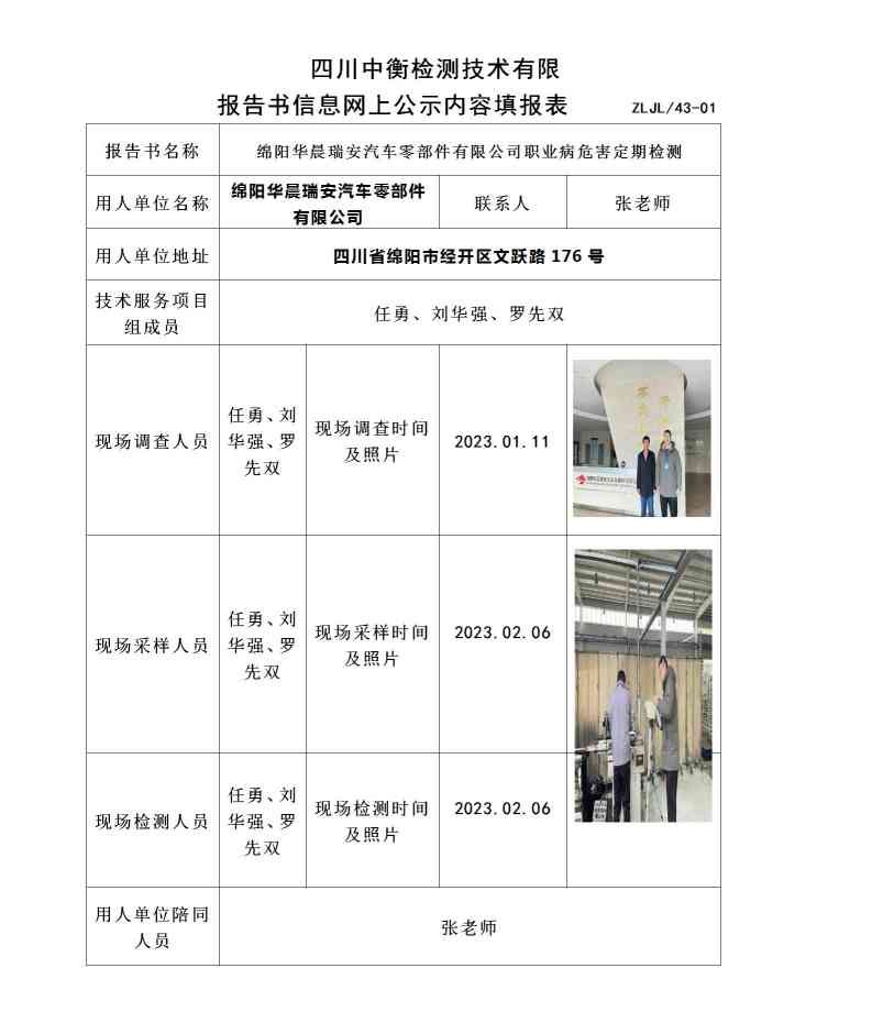 綿陽(yáng)華晨瑞安汽車(chē)零部件有限公司職業(yè)病危害定期檢測(cè)