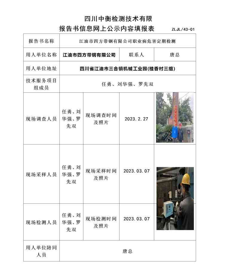 江油市四方帶鋼有限公司職業(yè)病危害定期檢測