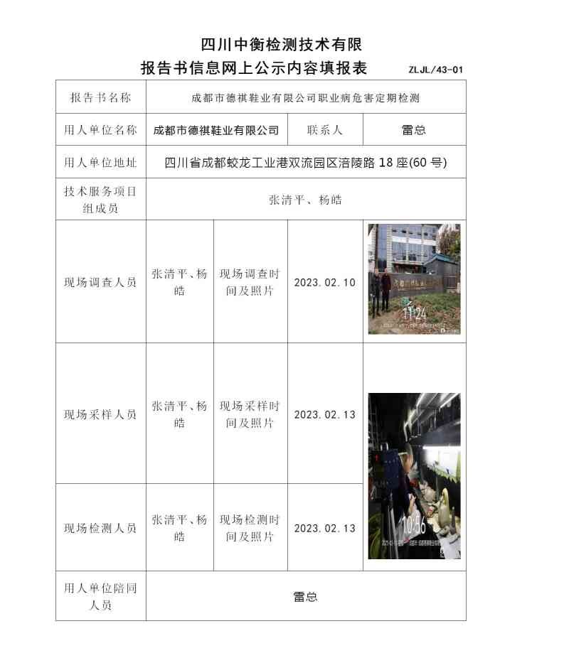 成都市德祺鞋業(yè)有限公司職業(yè)病危害定期檢測