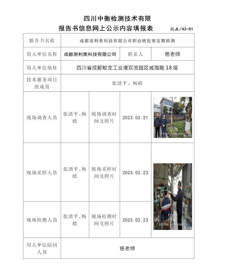 成都房利美科技有限公司職業(yè)病危害定期檢測