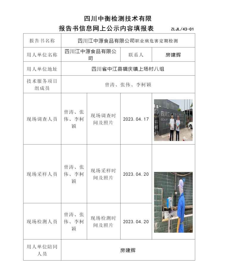 四川江中源食品有限公司職業(yè)病危害定期檢測(cè)
