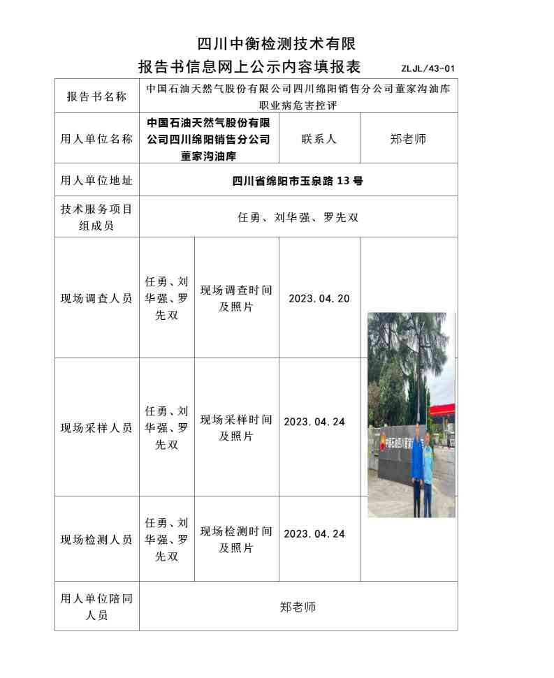 中國(guó)石油天然氣股份有限公司四川綿陽(yáng)銷(xiāo)售分公司董家溝油庫(kù)職業(yè)病危害定期檢測(cè)