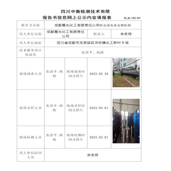 成都蜀光化工有限責(zé)任公司職業(yè)病危害定期檢測