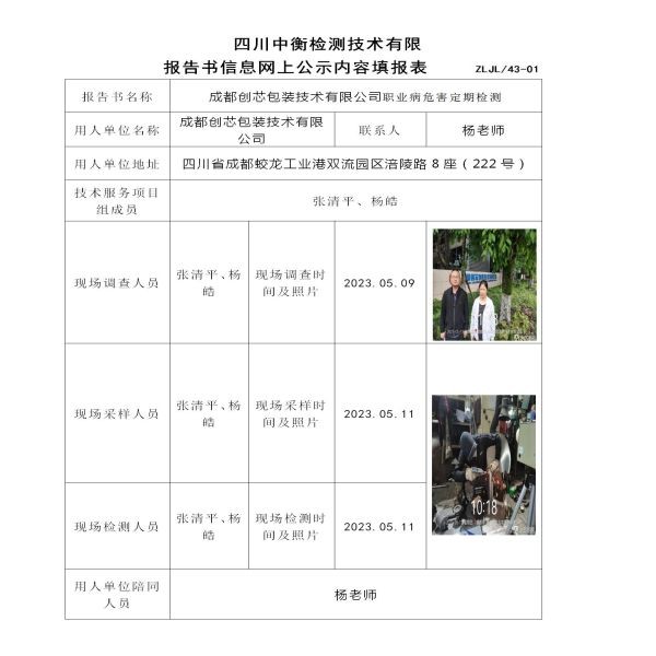 成都創(chuàng)芯包裝技術(shù)有限公司職業(yè)病危害定期檢測(cè)