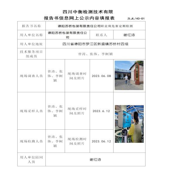 德陽(yáng)蘇橋包裝有限責(zé)任公司職業(yè)病危害定期檢測(cè)