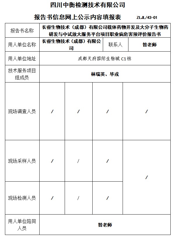 長(zhǎng)睿生物技術(shù)(成都)有限公司載體藥物開發(fā)及大分子生物藥研發(fā)與中試放大服務(wù)平臺(tái)項(xiàng)目預(yù)評(píng)價(jià)