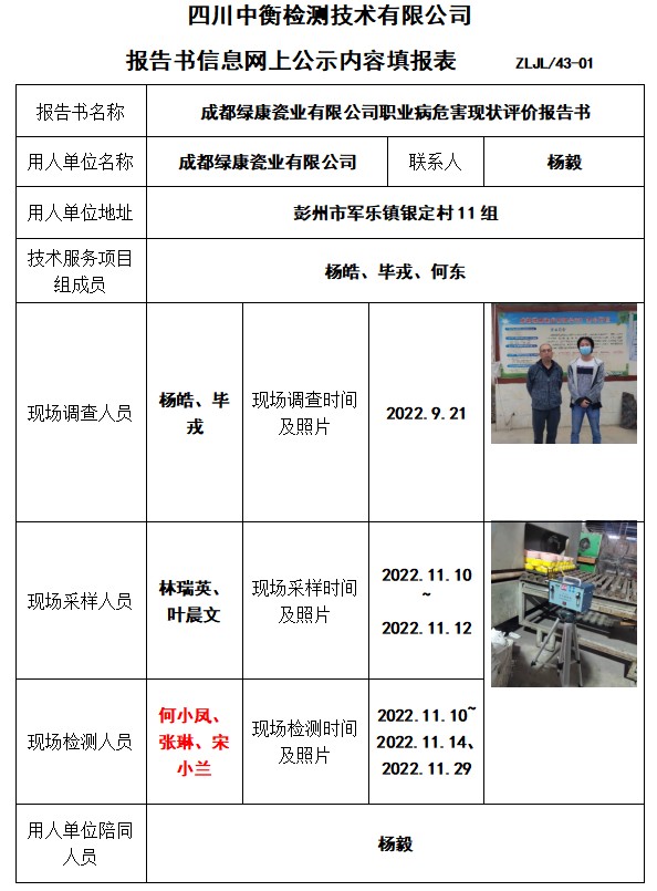 成都綠康瓷業(yè)有限公司現(xiàn)狀評價