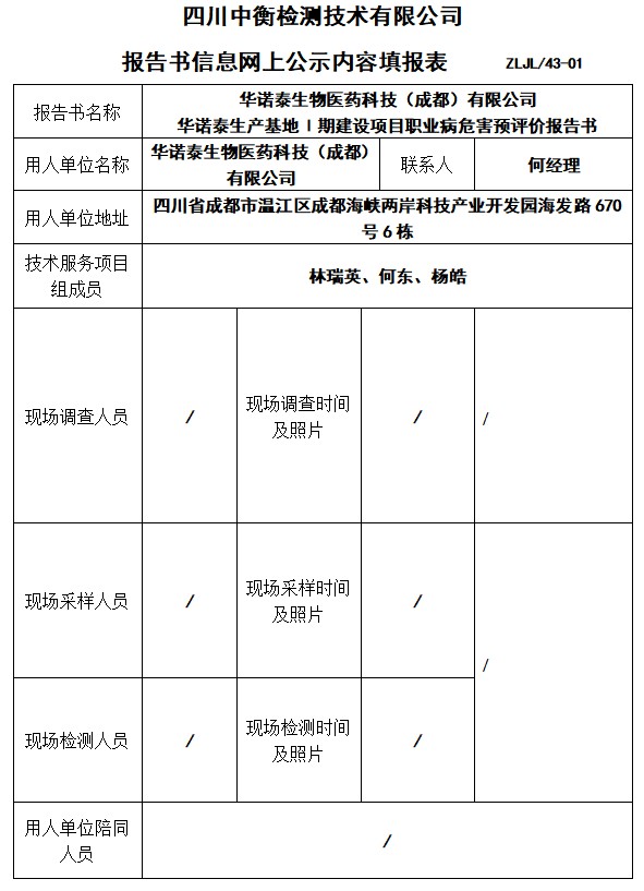 華諾泰生物醫(yī)藥科技(成都)有限公司預(yù)評(píng)價(jià)