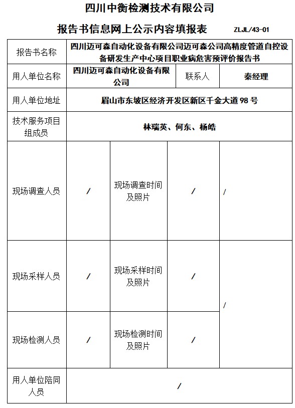四川邁可森自動(dòng)化設(shè)備有限公司邁可森公司高精度管道自控設(shè)備研發(fā)生產(chǎn)中心項(xiàng)目預(yù)評(píng)價(jià)