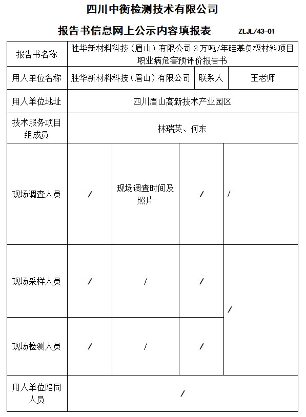 勝華新材料科技(眉山)有限公司3萬噸/年硅基負極材料項目預(yù)評價