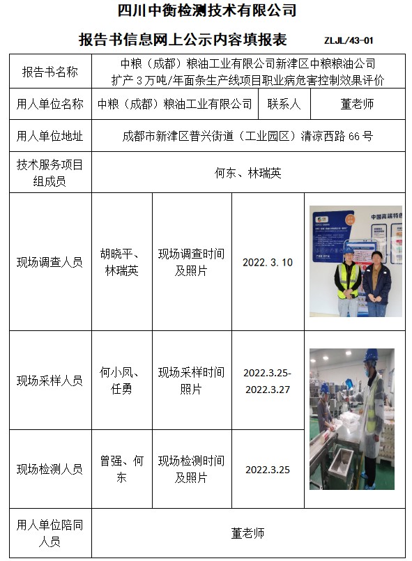 中糧(成都)糧油工業(yè)有限公司新津區(qū)中糧糧油公司 擴(kuò)產(chǎn)3萬噸/年面條生產(chǎn)線項(xiàng)目控制效果評(píng)價(jià)