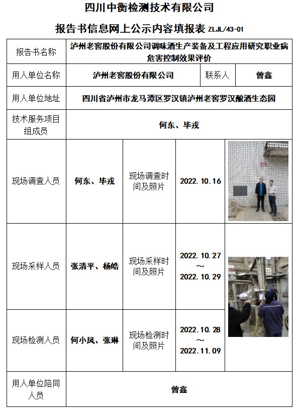 瀘州老窖股份有限公司調味酒生產(chǎn)裝備及工程應用研究控制效果評價