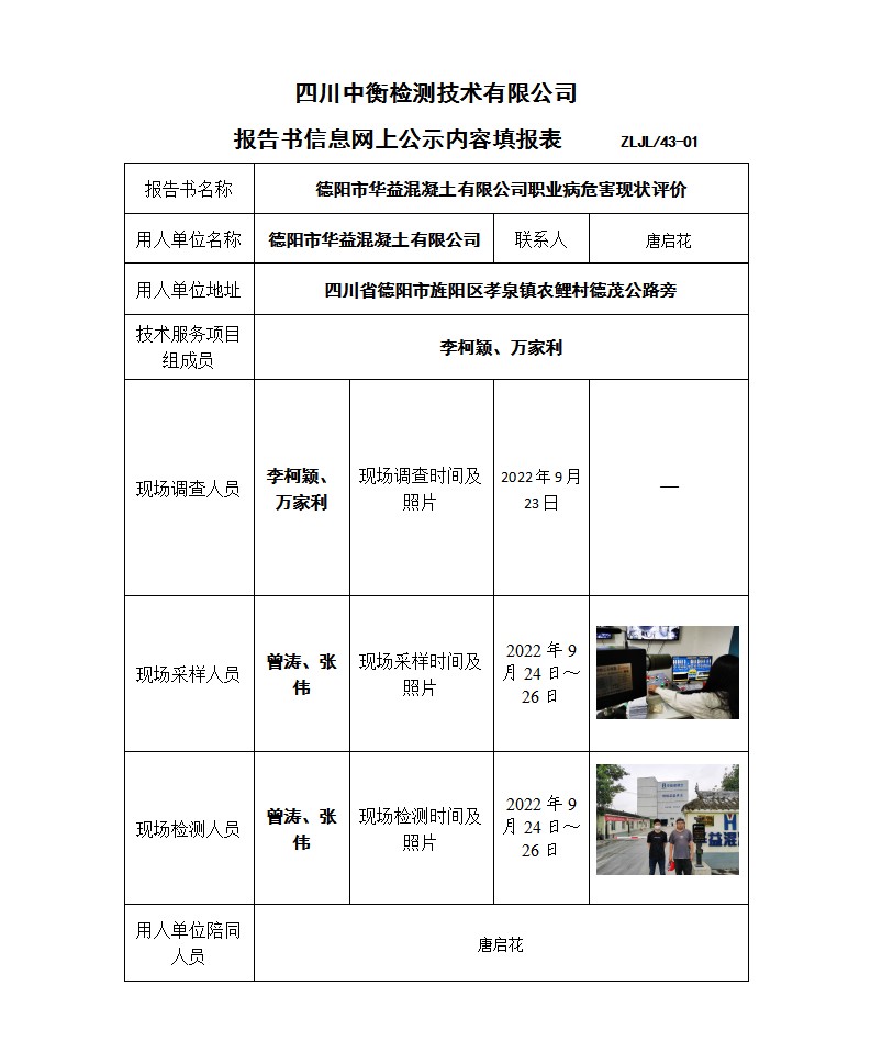 德陽(yáng)市華益混凝土有限公司 職業(yè)病危害現(xiàn)狀評(píng)價(jià)報(bào)告書