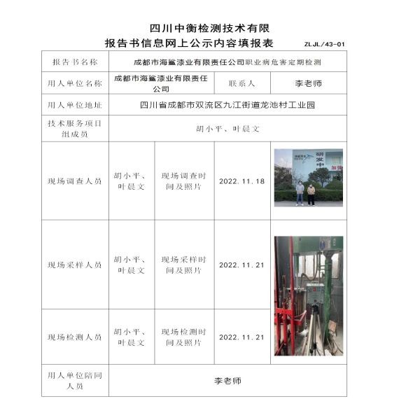 成都市海鯊漆業(yè)有限責(zé)任公司定期檢測
