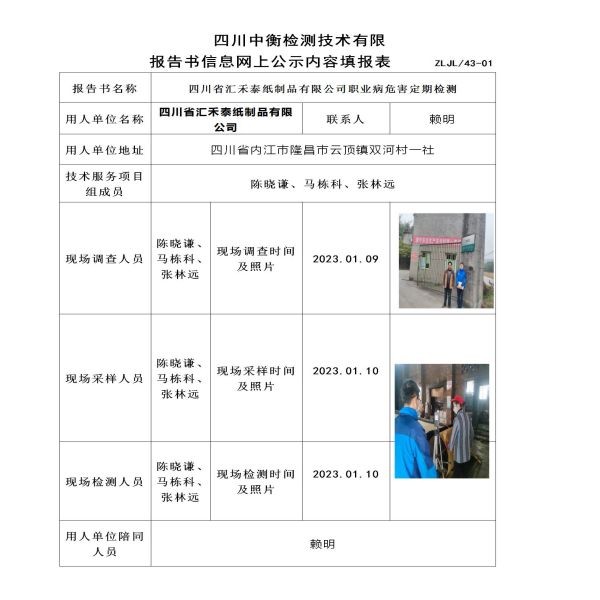 四川省匯禾泰紙制品有限公司定期檢測(cè)