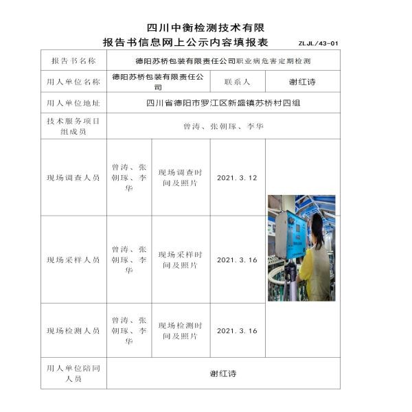 德陽(yáng)蘇橋包裝有限責(zé)任公司職業(yè)病危害定期檢測(cè)