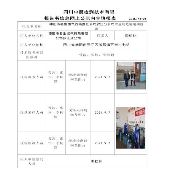 德陽市名生燃氣有限責任公司羅江分公司定期檢測