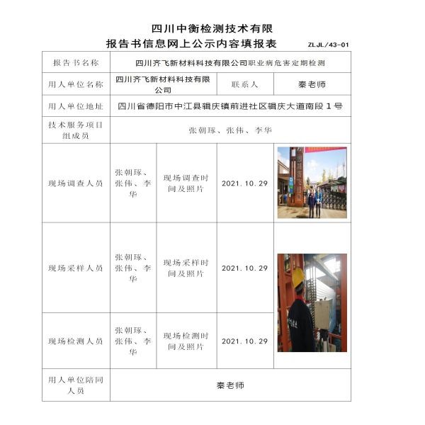 四川齊飛新材料科技有限公司定期檢測(cè)