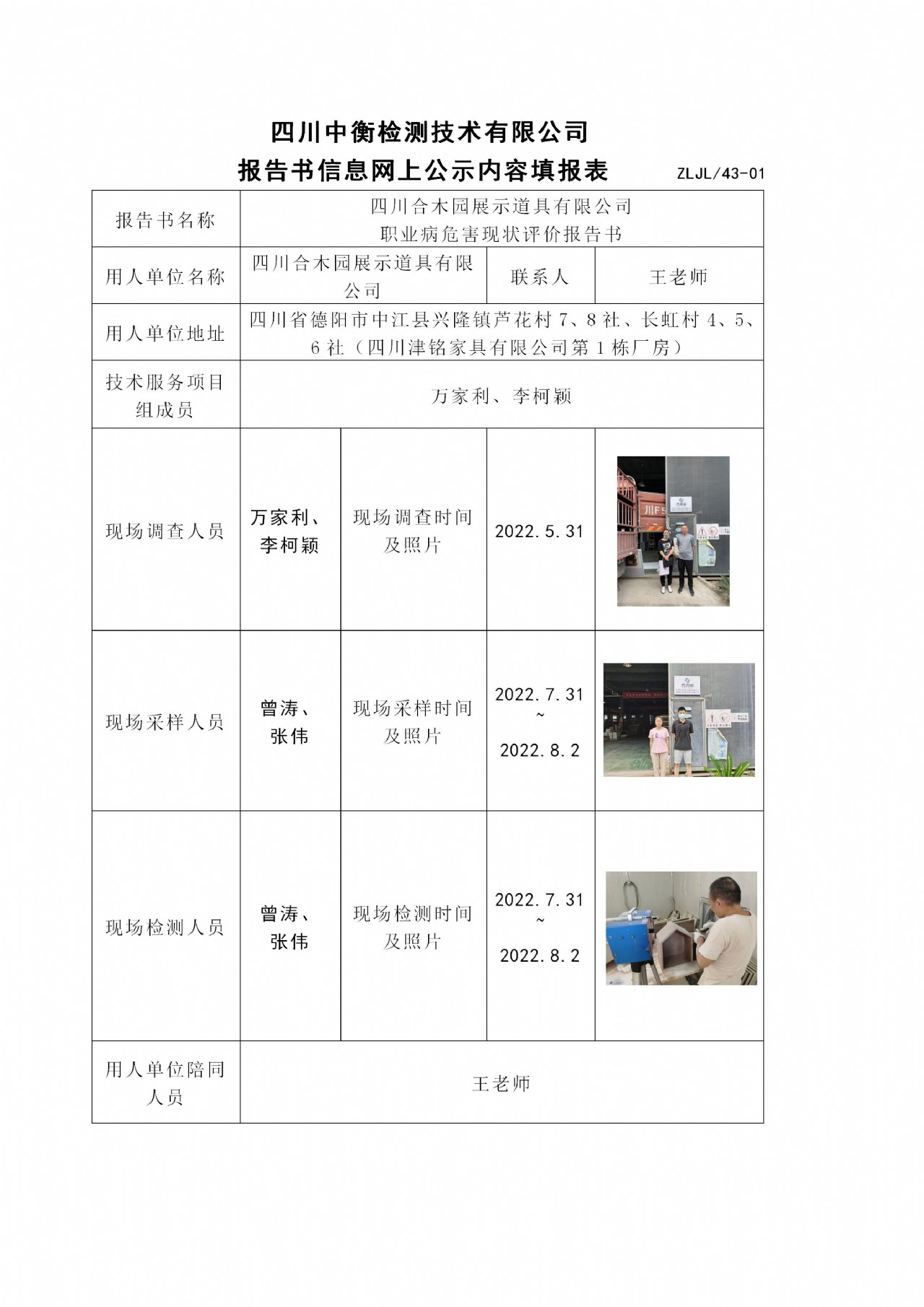 四川合木園展示道具有限公司職業(yè)病危害現(xiàn)狀評價(jià)