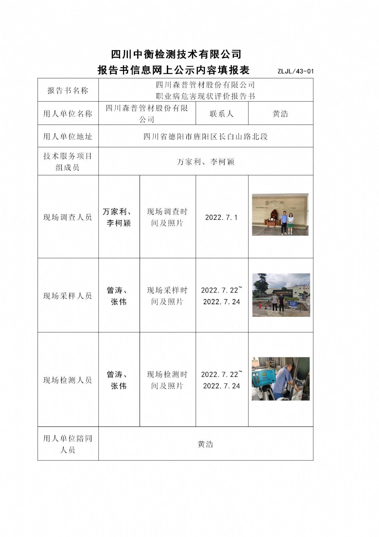 四川森普管材股份有限公司 職業(yè)病危害現(xiàn)狀評(píng)價(jià)