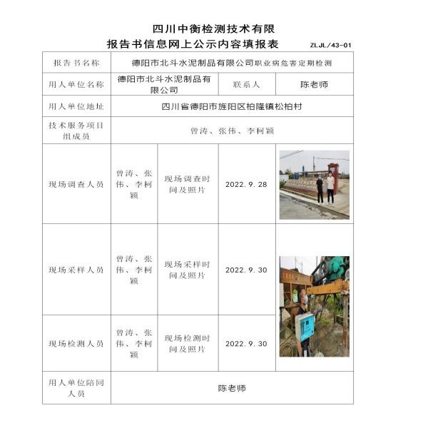 德陽市北斗水泥制品有限公司定期檢測(cè)