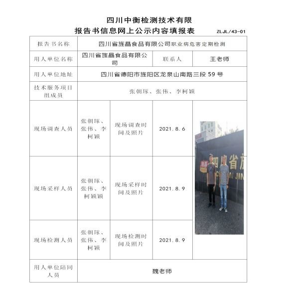 四川省旌晶食品有限公司定期檢測
