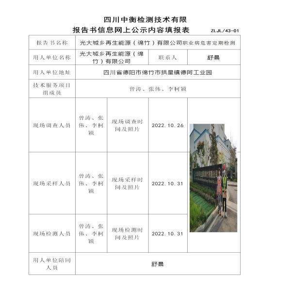 光大城鄉(xiāng)再生能源(綿竹)有限公司定期檢測