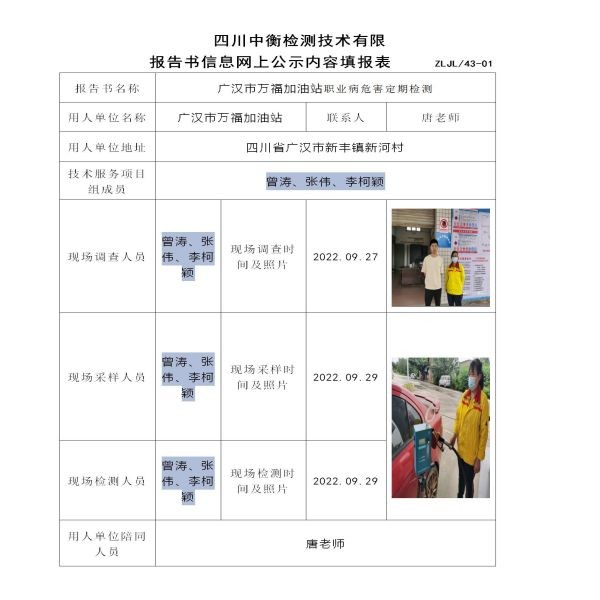 廣漢市萬(wàn)福加油站定期檢測(cè)