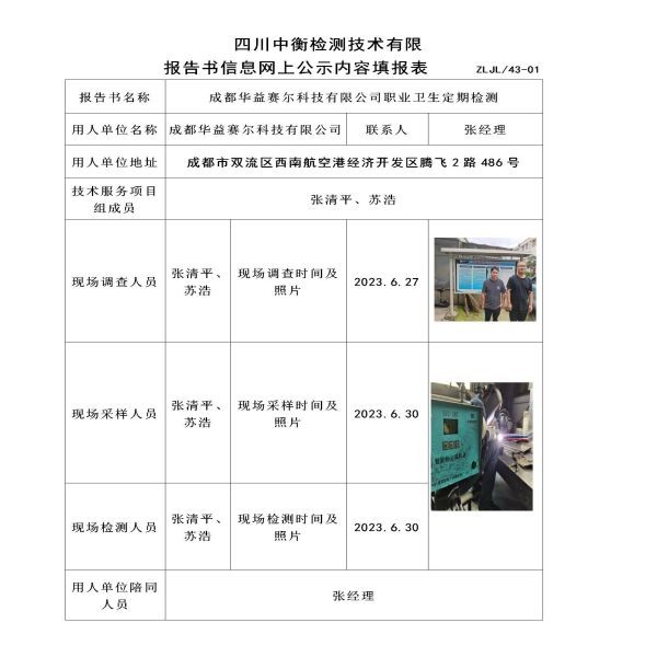 成都華益賽爾科技有限公司定期檢測