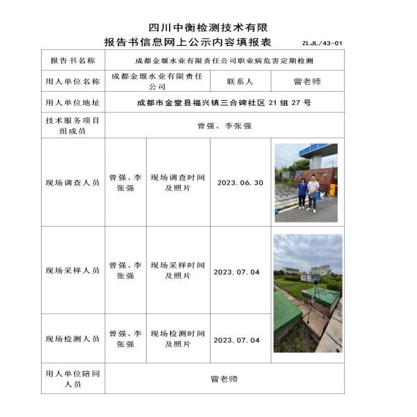 成都金堰水業(yè)有限責(zé)任公司定期檢測