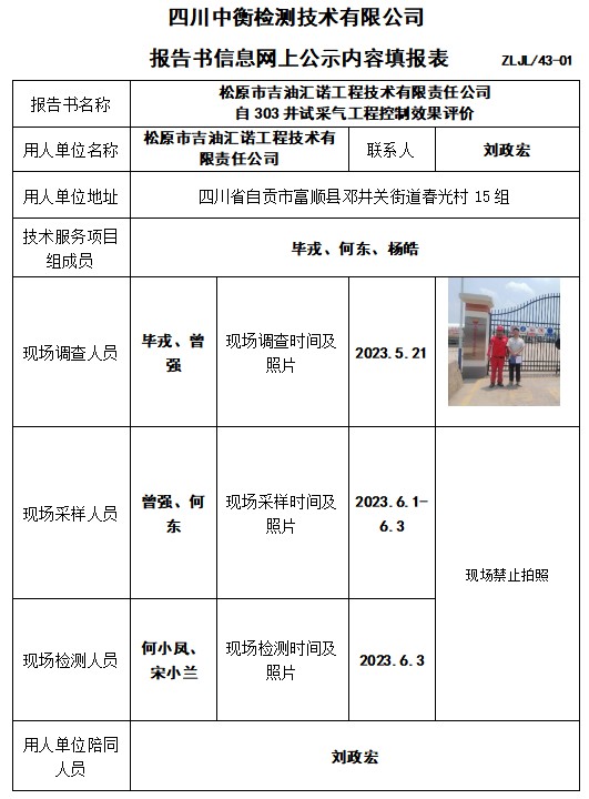 松原市吉油匯諾工程技術(shù)有限責(zé)任公司 自303井試采氣工程控制效果評(píng)價(jià)