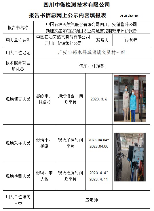 中國石油天然氣股份有限公司四川廣安銷售分公司 新建文星加油站項目職業(yè)病危害控制效果評價報告