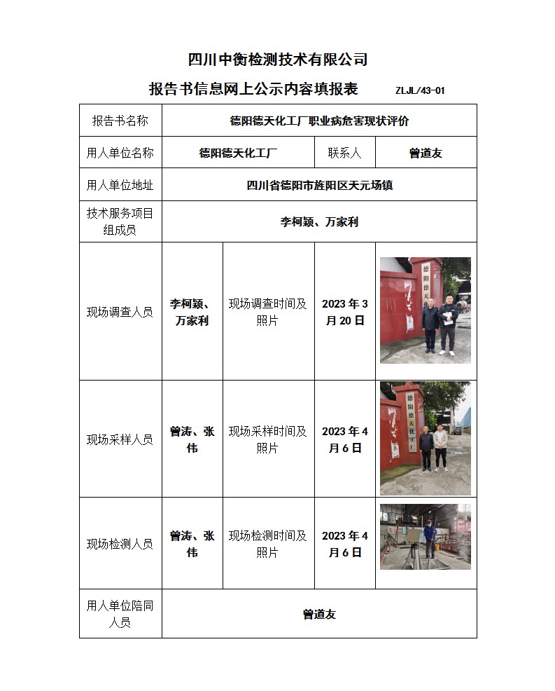 德陽德天化工廠職業(yè)病危害現(xiàn)狀評價