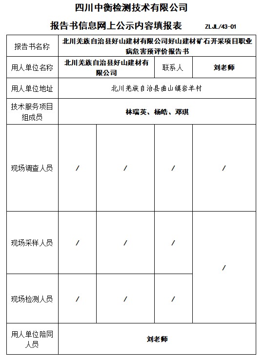 北川羌族自治縣好山建材有限公司好山建材礦石開采項(xiàng)目職業(yè)病危害預(yù)評價(jià)報(bào)告書