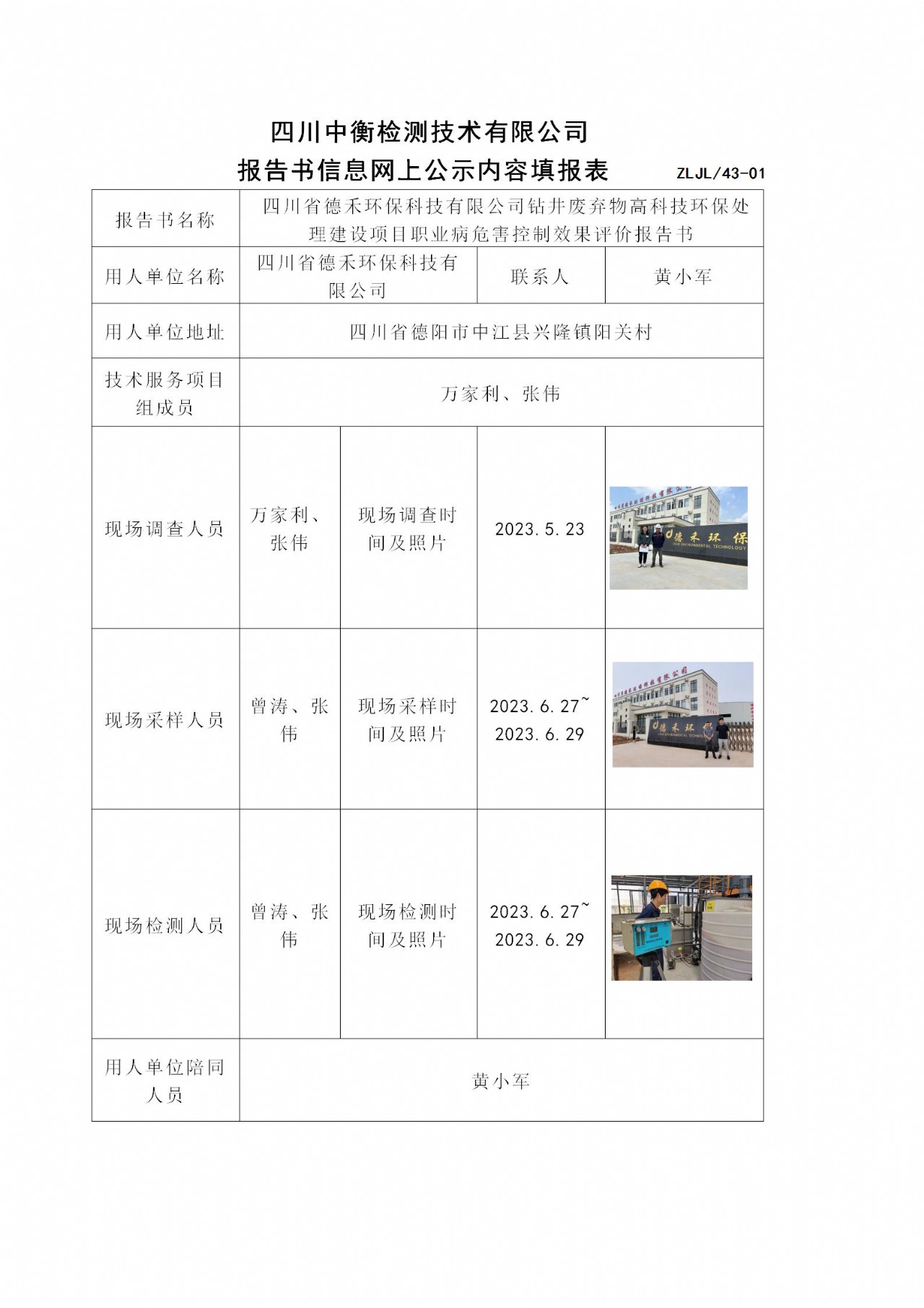 四川省德禾環(huán)保科技有限公司鉆井廢棄物高科技環(huán)保處理建設項目職業(yè)病危害控制效果評價