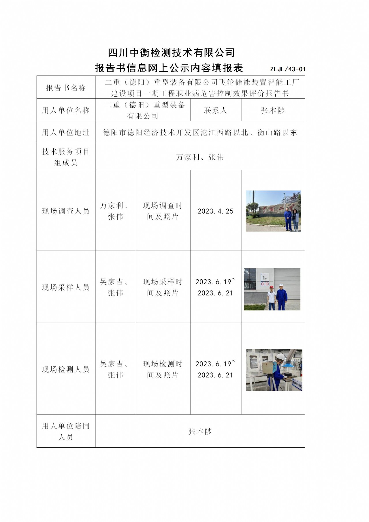 二重(德陽)重型裝備有限公司飛輪儲(chǔ)能裝置智能工廠建設(shè)項(xiàng)目一期工程職業(yè)病危害控制效果評(píng)價(jià)