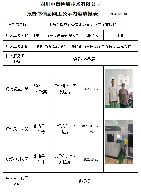 四川隱力醫(yī)療設(shè)備有限公司職業(yè)病危害現(xiàn)狀評(píng)價(jià)
