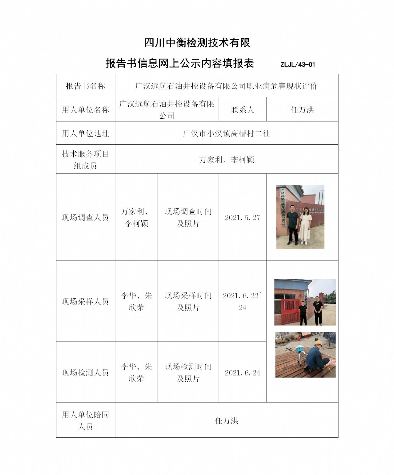 廣漢遠航石油井控設備有限公司職業(yè)病危害現(xiàn)狀評價