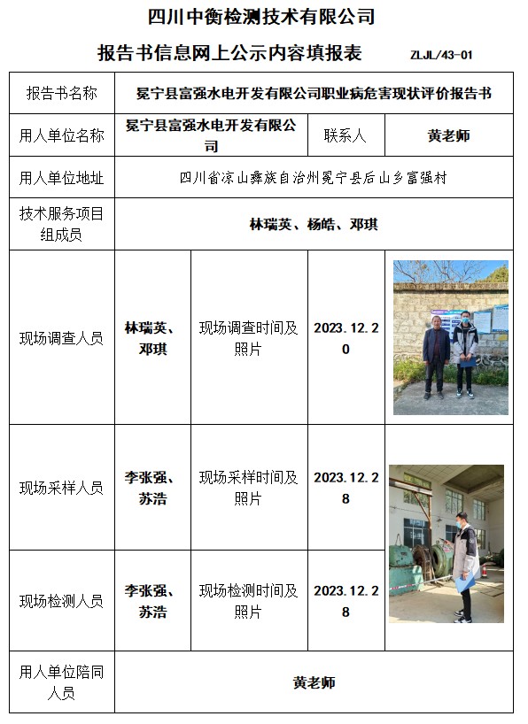 冕寧縣富強(qiáng)水電開發(fā)有限公司職業(yè)病危害現(xiàn)狀評(píng)價(jià)報(bào)告書